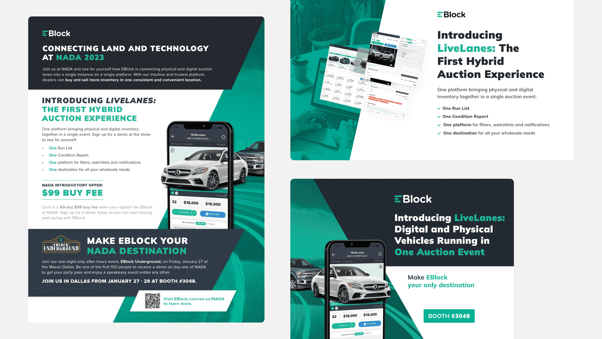 In addition to the demo video, we developed a range of supporting materials to amplify EBlock’s presence at the NADA Show. These included: