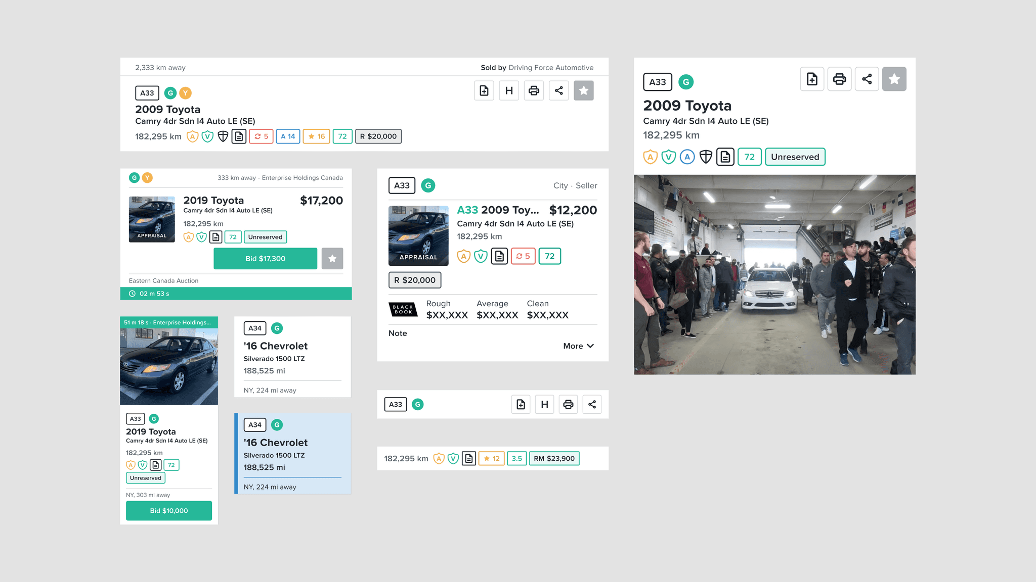 When auction partners ran simultaneous physical and digital auctions, buyers encountered different condition signals for identical vehicles, creating cognitive load and potential mistrust in our platform's accuracy.
